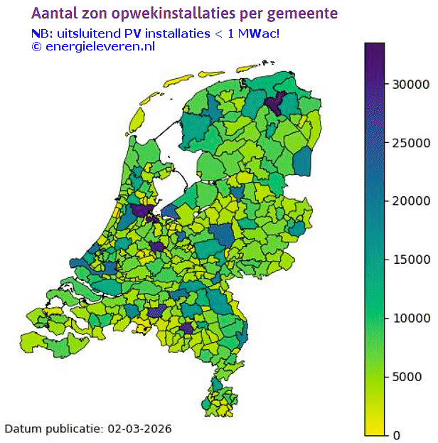 opwekinstallaties per gemeente geregistreerd bij energieleveren.nl.