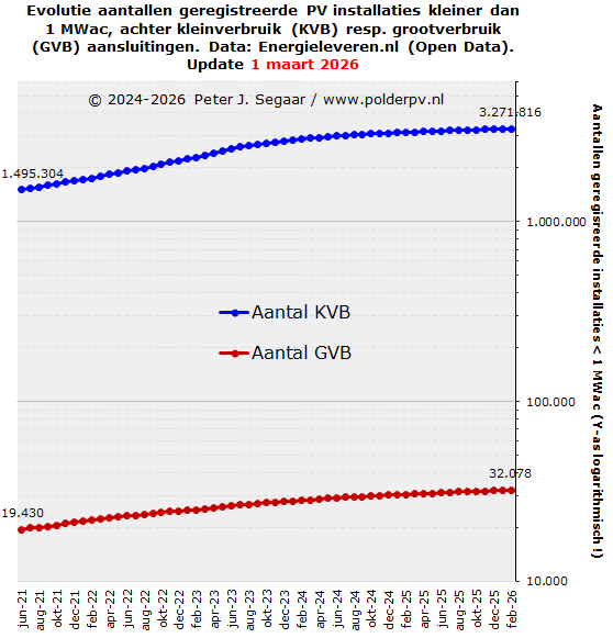 eind juni 2021, naar alweer ruim 3,27 miljoen stuks, begin maart 2026,