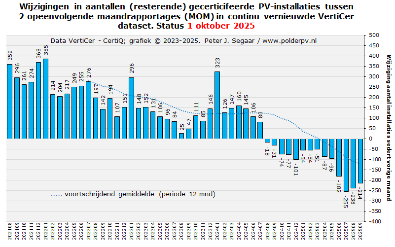 Het overzicht met de eerste, resp. gewijzigde cijfers voor september 2025 verscheen in de nieuwe, drastisch gewijzigde vorm op de website van VertiCer, op 1 oktober 2025. Referenties naar eerder verschenen historische data zijn uiteraard impliciet als CertiQ gegevens geanalyseerd, in oudere analyses.