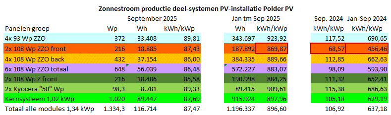 Met de toevoeging in september zijn er begin oktober 2025 in totaal nu bijna 3,26 miljoen PV installaties per stuk < 1 MWac bekend bij energieleveren.nl, volgens de optelling van de drie grootte-categorieën. Hierbij nogmaals de bekende disclaimer: dat is niet het aantal woningen, of dergelijke claims. Er worden immers zeer regelmatig uitbreidingen (= "installaties") aan bestaande projecten toegevoegd, zowel residentieel, als in de projecten markt, een endemisch verschijnsel in Nederland. Het aantal "objecten", "erven", "project sites", is, derhalve, altijd (veel) lager, dan bovengenoemd getal. Wat, desondanks, natuurlijk zonder meer een spectaculair volume blijft weergeven.