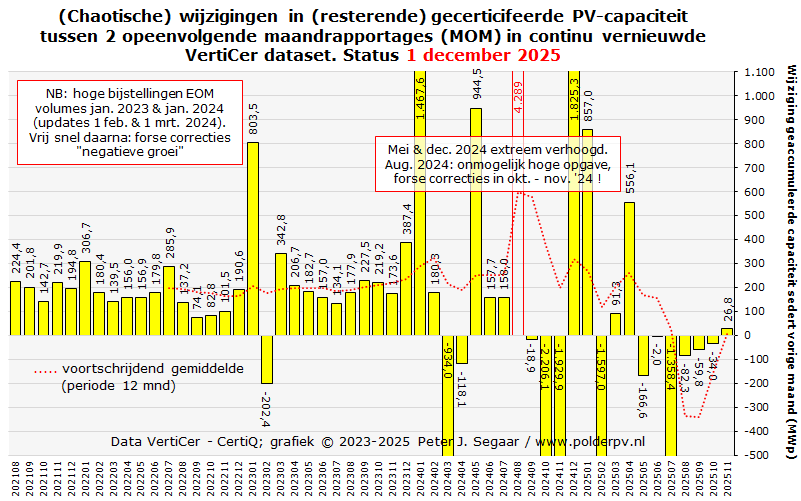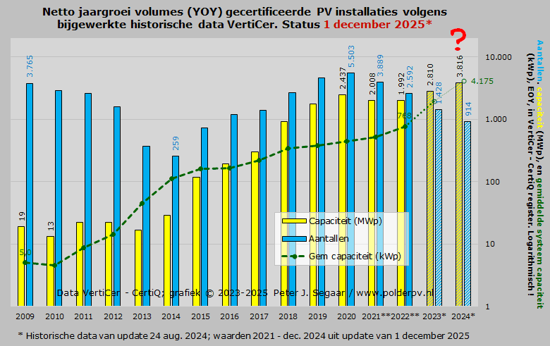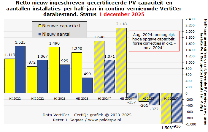 De oudere data voor Australië zijn marginaal aangepast ("opgeplust"), vanaf het jaar 2003. Kennelijk worden daar af en toe nog steeds oudere installaties "terug gevonden" en in de nationale database opgenomen. Voor Nederland zijn de data ingrepen voor de jaren 2023 en 2024 (zeer) substantieel, zoals in deel 1 van deze miniserie werd geopenbaard. En is ook het eerste half-jaar volume voor 2025 bekend gemaakt.